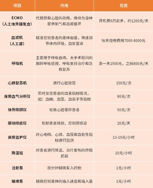 而且像ECMO、呼吸机、人工肾这类“烧钱”医疗设备,一旦用上,每天的费用那真的是哗哗流。