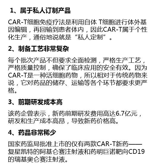 这个过程就是 CAR-T 产品的制备和生产过程。 其实,这种产品,就是私人定制。说是120 万元买的是“抗癌药”,还不如准确的说是买的私人定制款的CAR-T疗法。