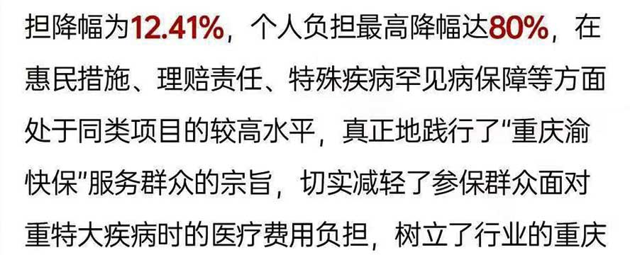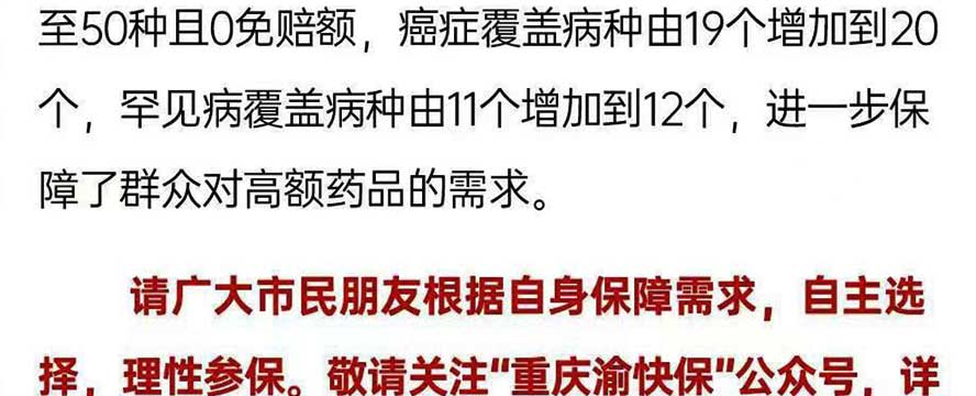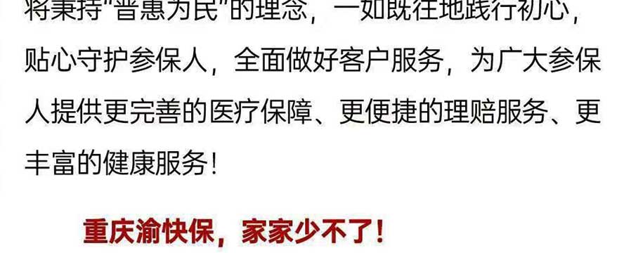 “重庆渝快保”不限职业、不限年龄、不限健康状况,既往症可保可赔。
